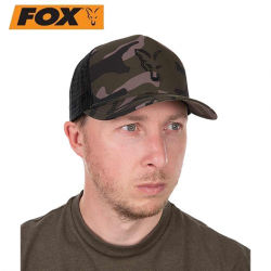18,50 €Gorra estilo Trucker de camuflaje con malla negra y visera camuflaje. Logotipo de la cabeza del zorro negro impresa en goma