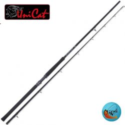 Con la serie Uni Cat Black Out volvemos a las raíces e incorporamos al desarrollo las experiencias positivas del entonces legendario Dream Fish con la última tecnología en construcción de cañas. Entonces, apostamos por una caña de pescar para bagre casi indestructible con una acción de punta muy sensible. Esto garantiza una detección óptima de la picada y un increíble placer de pelea. En combinación con las enormes reservas de potencia, podemos generar una presión específica en situaciones difíciles y al mismo tiempo experimentar excelentes propiedades de trabajo. La pesca del siluro suele ser muy dura, hay que reaccionar con mucha rapidez y flexibilidad ante las más diversas situaciones en el agua y cambiar de lugar con frecuencia. Equipadas con guías de cromo duro de 6 barras sin inserciones.