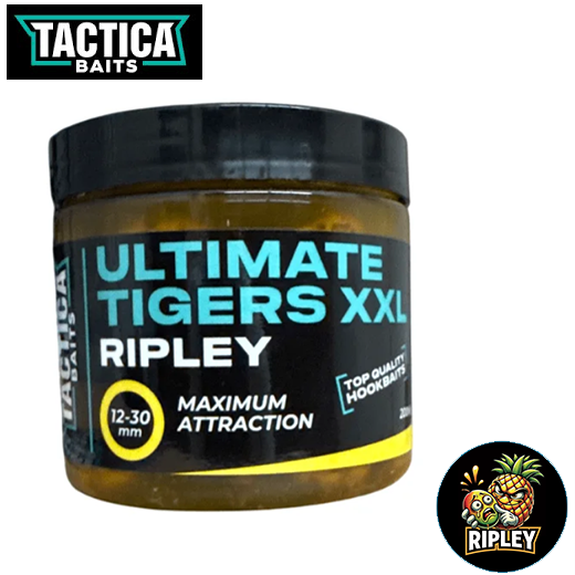 Las Tactica Baits Ultimate Tigers XXL Ripley son chufas de gran tamaño con denominación valenciana, diseñadas para atraer incluso a los peces más recelosos. Su contenido natural en azúcares las convierte en un cebo altamente eficaz, ideal para la pesca de carpas y barbos durante todo el año, incluso en escenarios complicados como cuando la actividad del cangrejo es elevada.