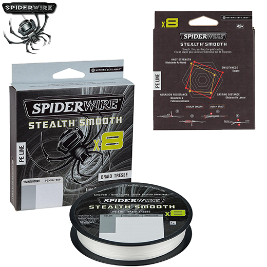 El trenzado SpiderWire® Stealth® Smooth x8 ofrece una sensación suave y tersa sin sacrificar la resistencia, la sensibilidad o el diámetro. Stealth Smooth x8 está tejido estrechamente con 8 portadores de fibra de PE para crear un trenzado redondo y apretada que es suave para lanzamientos silenciosos.